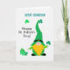 Eine lustige Grußkarte für Ihren Urenkel am St. Patrick's Day, mit einem niedlichen Kobold mit einem Kleeblatt. Der Kobold hat einen sehr hohen Hut, in einem grünen Muster, einen großen Ingwer-Bart, eine riesige Nase, gestreifte Ärmel und Socken und schwarze Schuhe. Oben, in dunkelgrüner Schrift, ist das Wort "GREAT GRANDSON" und die Insider-Nachricht ist einfach zu anpassen oder zu löschen.