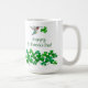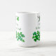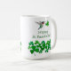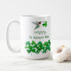 Niedliche St. Patrick's Day Tasse mit einem rubingebeutelten Kolibri, der ein Kleeblatt trägt.