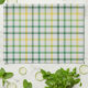 Kitchen towel is shown in a green, yellow and white plaid print.