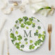 Moderne, grüne Kleeblatt-Bouquet-Monogramm-Design. Sehr hellgrünes Kleeblatt im Hintergrund mit kräftigeren grünen Farben im Vordergrund mit Monogramm