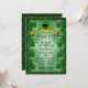 St. Patrick's Day Party Einladung mit grünen vierblättrigen Kleeblatten und einem Kobelhut.