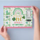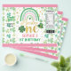 [ALL text is EDITABLE, außer Lucky ONE] Theme: St Patrick's Day Rainbow Kleeblatt. Gelegenheiten: Mädchen 1. Geburtstag Party. Stil: Niedlich, elegant, Boho. Farben: Grün, Rosa, Gold, Weiß. Grafiken: Regenbogen, Wasserfarbe, False Gold.