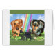 Hier zwei süße Dackeln, die auf jeder Seite eines Goldtopfes am Ende des Regenbogens stehend sind. Ideal für den St. Patricts Day und Hundefreunde.