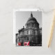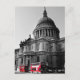 Schwarz-Weiß-Bild der St. Paul's Cathedral London mit einer selektiven Farbe Double Decker London Buses