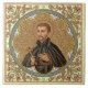 Peter Claver (1580-1654) war ein spanischer Jesuitenpriester und Missionar. Im Jahr 1610 bot St. Peter Freiwilligendienst im Neuen Königreich Granada auf dem amerikanischen Kontinent an, zu dem das heutige Panama, Kolumbien und Venezuela gehörten. Dort arbeitete er 40 Jahre lang bei Sklaven, als sie in Cartagena ankamen, einem wichtigen Drehkreuz im transatlantischen Sklavenhandel, und auf den Plantagen im benachbarten Land. Seine unermüdlichen Bemühungen, die Sklaven nicht nur durch Predigen Christi zum Katholizismus zu bekehren, sondern auch ihr Leiden zu mildern, verdienten ihm den Begriff "Sklave der Afrikaner". + Hier wird der heilige Peter in Jesuitengarb gezeigt - ein schwarzer Kassock und ein farbiger Kap. Er hält ein einfaches, braunes Holzkreuz und eine Dornkrone, Symbole Jesu als "Mann der Trauer und mit Kummer vertraut" (Isaiah 53:3). Das Bild ist in einen inneren Rahmen eingebettet, der an ein gotisches achtblättriges Rose- (oder Radfenster) erinnert; die Ecken des einfachen, quadratischen Außenrahmens sind mit heraldischen Dickstäben gefüllt. + St. Peter Claver starb am 8. September 1654 von natürlichen Ursachen nach einer langen Krankheit. Er ist Schutzpatron der Rassenjustiz, der Afroamerikaner, afrikanischer Missionen, Sklaven und der Republik Kolumbien. + Fest: 9. September + Image Credit (BK 058): Antique image of S[aint] Petrus [Peter] Claver, S.J., ursprünglich in Chromolithografie von B. Kühlen, Mönchengladbach, Deutschland, unnummeriert Jesuit Series, Ende des 19. Jahrhunderts, aus der privaten Sammlung religiöser Ephemene des Designers veröffentlicht.