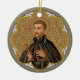 Peter Claver (1580-1654) war ein spanischer Jesuitenpriester und Missionar. Im Jahr 1610 bot St. Peter Freiwilligendienst im Neuen Königreich Granada auf dem amerikanischen Kontinent an, zu dem das heutige Panama, Kolumbien und Venezuela gehörten. Dort arbeitete er 40 Jahre lang bei Sklaven, als sie in Cartagena ankamen, einem wichtigen Drehkreuz im transatlantischen Sklavenhandel, und auf den Plantagen im benachbarten Land. Seine unermüdlichen Bemühungen, die Sklaven nicht nur durch Predigen Christi zum Katholizismus zu bekehren, sondern auch ihr Leiden zu mildern, verdienten ihm den Begriff "Sklave der Afrikaner". + Hier wird der heilige Peter in Jesuitengarb gezeigt - ein schwarzer Kassock und ein farbiger Kap. Er hält ein einfaches, braunes Holzkreuz und eine Dornkrone, Symbole Jesu als "Mann der Trauer und mit Kummer vertraut" (Isaiah 53:3). Das Bild ist in einen inneren Rahmen eingebettet, der an ein gotisches achtblättriges Rose- (oder Radfenster) erinnert; die Ecken des einfachen, quadratischen Außenrahmens sind mit heraldischen Dickstäben gefüllt. + St. Peter Claver starb am 8. September 1654 von natürlichen Ursachen nach einer langen Krankheit. Er ist Schutzpatron der Rassenjustiz, der Afroamerikaner, afrikanischer Missionen, Sklaven und der Republik Kolumbien. + Fest: 9. September + Image Credit (BK 058): Antique image of S[aint] Petrus [Peter] Claver, S.J., ursprünglich in Chromolithografie von B. Kühlen, Mönchengladbach, Deutschland, unnummeriert Jesuit Series, Ende des 19. Jahrhunderts, aus der privaten Sammlung religiöser Ephemene des Designers veröffentlicht.