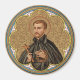Peter Claver (1580-1654) war ein spanischer Jesuitenpriester und Missionar. Im Jahr 1610 bot St. Peter Freiwilligendienst im Neuen Königreich Granada auf dem amerikanischen Kontinent an, zu dem das heutige Panama, Kolumbien und Venezuela gehörten. Dort arbeitete er 40 Jahre lang bei Sklaven, als sie in Cartagena ankamen, einem wichtigen Drehkreuz im transatlantischen Sklavenhandel, und auf den Plantagen im benachbarten Land. Seine unermüdlichen Bemühungen, die Sklaven nicht nur durch Predigen Christi zum Katholizismus zu bekehren, sondern auch ihr Leiden zu mildern, verdienten ihm den Begriff "Sklave der Afrikaner". + Hier wird der heilige Peter in Jesuitengarb gezeigt - ein schwarzer Kassock und ein farbiger Kap. Er hält ein einfaches, braunes Holzkreuz und eine Dornkrone, Symbole Jesu als "Mann der Trauer und mit Kummer vertraut" (Isaiah 53:3). Das Bild ist in einen inneren Rahmen eingebettet, der an ein gotisches achtblättriges Rose- (oder Radfenster) erinnert; die Ecken des einfachen, quadratischen Außenrahmens sind mit heraldischen Dickstäben gefüllt. + St. Peter Claver starb am 8. September 1654 von natürlichen Ursachen nach einer langen Krankheit. Er ist Schutzpatron der Rassenjustiz, der Afroamerikaner, afrikanischer Missionen, Sklaven und der Republik Kolumbien. + Fest: 9. September + Image Credit (BK 058): Antique image of S[aint] Petrus [Peter] Claver, S.J., ursprünglich in Chromolithografie von B. Kühlen, Mönchengladbach, Deutschland, unnummeriert Jesuit Series, Ende des 19. Jahrhunderts, aus der privaten Sammlung religiöser Ephemene des Designers veröffentlicht.