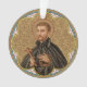 Peter Claver (1580-1654) war ein spanischer Jesuitenpriester und Missionar. Im Jahr 1610 bot St. Peter Freiwilligendienst im Neuen Königreich Granada auf dem amerikanischen Kontinent an, zu dem das heutige Panama, Kolumbien und Venezuela gehörten. Dort arbeitete er 40 Jahre lang bei Sklaven, als sie in Cartagena ankamen, einem wichtigen Drehkreuz im transatlantischen Sklavenhandel, und auf den Plantagen im benachbarten Land. Seine unermüdlichen Bemühungen, die Sklaven nicht nur durch Predigen Christi zum Katholizismus zu bekehren, sondern auch ihr Leiden zu mildern, verdienten ihm den Begriff "Sklave der Afrikaner". + Hier wird der heilige Peter in Jesuitengarb gezeigt - ein schwarzer Kassock und ein farbiger Kap. Er hält ein einfaches, braunes Holzkreuz und eine Dornkrone, Symbole Jesu als "Mann der Trauer und mit Kummer vertraut" (Isaiah 53:3). Das Bild ist in einen inneren Rahmen eingebettet, der an ein gotisches achtblättriges Rose- (oder Radfenster) erinnert; die Ecken des einfachen, quadratischen Außenrahmens sind mit heraldischen Dickstäben gefüllt. + St. Peter Claver starb am 8. September 1654 von natürlichen Ursachen nach einer langen Krankheit. Er ist Schutzpatron der Rassenjustiz, der Afroamerikaner, afrikanischer Missionen, Sklaven und der Republik Kolumbien. + Fest: 9. September + Image Credit (BK 058): Antique image of S[aint] Petrus [Peter] Claver, S.J., ursprünglich in Chromolithografie von B. Kühlen, Mönchengladbach, Deutschland, unnummeriert Jesuit Series, Ende des 19. Jahrhunderts, aus der privaten Sammlung religiöser Ephemene des Designers veröffentlicht.