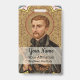 Peter Claver (1580-1654) war ein spanischer Jesuitenpriester und Missionar. Im Jahr 1610 bot St. Peter Freiwilligendienst im Neuen Königreich Granada auf dem amerikanischen Kontinent an, zu dem das heutige Panama, Kolumbien und Venezuela gehörten. Dort arbeitete er 40 Jahre lang bei Sklaven, als sie in Cartagena ankamen, einem wichtigen Drehkreuz im transatlantischen Sklavenhandel, und auf den Plantagen im benachbarten Land. Seine unermüdlichen Bemühungen, die Sklaven nicht nur durch Predigen Christi zum Katholizismus zu bekehren, sondern auch ihr Leiden zu mildern, verdienten ihm den Begriff "Sklave der Afrikaner". + Hier wird der heilige Peter in Jesuitengarb gezeigt - ein schwarzer Kassock und ein farbiger Kap. Er hält ein einfaches, braunes Holzkreuz und eine Dornkrone, Symbole Jesu als "Mann der Trauer und mit Kummer vertraut" (Isaiah 53:3). Das Bild ist in einen inneren Rahmen eingebettet, der an ein gotisches achtblättriges Rose- (oder Radfenster) erinnert; die Ecken des einfachen, quadratischen Außenrahmens sind mit heraldischen Dickstäben gefüllt. + St. Peter Claver starb am 8. September 1654 von natürlichen Ursachen nach einer langen Krankheit. Er ist Schutzpatron der Rassenjustiz, der Afroamerikaner, afrikanischer Missionen, Sklaven und der Republik Kolumbien. + Fest: 9. September + Image Credit (BK 058): Antique image of S[aint] Petrus [Peter] Claver, S.J., ursprünglich in Chromolithografie von B. Kühlen, Mönchengladbach, Deutschland, unnummeriert Jesuit Series, Ende des 19. Jahrhunderts, aus der privaten Sammlung religiöser Ephemene des Designers veröffentlicht. + Fühlen Sie sich frei, Texte, Schriftart und Farben zu ändern!