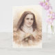 This elegant folded greeting features a soft vintage watercolor portrait of St. Thérèse of Lisieux, the Little Flower, holding her crucifix and roses—symbols of her deep love for Christ and her promise to spend Heaven doing good upon earth.