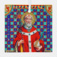 In dieser ruhmreichen Repräsentation steht der Erzbischof von Canterbury, St. Thomas Becket, vor einem für Mass gekleideten Altar. Der Altar ist wahrscheinlich für den St. Benedikts bestimmt, in dessen Nähe er am 29. Dezember 1170 ermordet wurde, und nicht an welchem. Es ist ein formales Portrait, das heißt, das Thema erscheint gestellt. Becket trägt einen knallroten Schachtel über einem blau-grünen dalmatinischen und weißen Alb. Über den Ärger trägt er sein großstädtisches Pallium - ein Kleidungsstück, das für sein Amt als Erzbischof steht, der in einer kirchlichen Provinz aus mehreren Diözesen präsidiert. Das Pallium ist mit 11 sichtbaren Patenterkreuzen geschmückt, nicht mit den gewohnten 5 sichtbaren Kreuzen. (Im Mittelalter gab es keine eindeutige Regelung für die Anzahl der benutzten Kreuze.) Der Heilige Thomas knistert seinen Milben im Gabel seines rechten Arms und trägt sein archiepiskopales Kreuz in seiner links Hand. Ein Schlag in der Stirn, eine Märtyrerpalme und die blutrote Scheuklappen in liturgischer Farbe für Märtyrer sprechen von seiner Ermordung. Es ist kein Schwert in Sicht - nicht einmal eines, das auf dem Boden zu seinen Füßen liegt. Sein Name in Latein (Thomas Cantuariensis, das ist Thomas von Canterbury) flankiert vertikal seine Figur im Aqua und Saphir blau karierten Hintergrund. Das Ganze ist in einem Rahmen keltischer Gestaltung enthalten. + Es gibt einige interessante Facetten dieser Darstellung: 1) Wenn Sie sich unsere M 033 und P 005 anschauen, würden Sie nie wissen, dass Becket in seinem frühen 50er war, als er ermordet wurde. Sie stellen ihn als jung und unabhängig dar. Dieses Bild ist viel altersgerechter: Er trägt einen vollen Bart, sein Haar und sein Bart sind grau. Dies ist ein großer Abschied von Beckets früherer, etablierter Ikonographie. 2) Während Becket für Mass gekleidet ist, ist er während der Weihnachtsfeiertage nicht für Masses gekleidet. Das Rot seiner Scheuklappen bezieht sich wahrscheinlich auf sein eigenes Märtyrertod und nicht auf das des "Heiligen des Tages" (dann St. Trophimus von Arles?). Dennoch werden weiße oder goldene Samenkörbe in der liturgischen Weihnachtszeit gewöhnlich getragen, wobei andere Farben übertroffen werden. 3) Daneben feierte Becket am Tag seines Märtyrertums Vesper - nicht Mass - mit seinem Klerus und mit anderem Kleid: Mehrere Quellen trugen Becket in einem weißen Rochet (einem nah passenden kirchlichen Gewand mit schmalen Ärmeln, die normalerweise aus Leinen bestehen) und trug einen Mantel und eine Kapuze über den Schultern (was eher der mittelalterlichen Version eines zzetta). In der Abtei Dommartin im Pas-de-Calais, Frankreich, ist ein Felsen von Becket, das einzige noch erhaltene Beispiel aus dem Mittelalter, erhalten geblieben. Und der Vatikan hat der Canterbury Kathedrale das blutige Tunicle Becket geliehen, das angeblich getragen wurde, als er vor etwa 850 Jahren ermordet wurde. Schließlich: 4) Im späten 19. Jahrhundert, als dieses Bild ursprünglich veröffentlicht wurde, war Becket vielfach porträtiert worden, indem er die abgetrennte Krone seines Kopfes in den Händen hielt, mit einem Schwert, das in seinem Schädel heimlich eingeklemmt war, mit verschiedenen Wunden an Kopf und Stirn, und vor allem mit einem Schwert, der seinen mitreißenden Kopf von Seite nach Seite durchbohrte. Wie die Porträts zeigen, sind Beckets Wunden hier etwas untertrieben, aber nicht übersehen. Abschließend möchte ich sagen, dass dieses Bild nicht als formales Portrait zu irgendeiner bestimmten Zeit gemeint zu sein scheint - sicherlich nicht als Tag seines Märtyrertums -, sondern für immer. + St. Thomas Becket ist Patron der säkularen Geistlichkeit. + Fest: 29. Dezember + Image Credit (K 34): Detail eines antiken Bildes von St. Thomas von Canterbury von Henry Riancey's La vie des Saints : Illustration en et en couleurs, d'aprè s les manuscrits de tous les sicles par Kellerhoven (Paris: Librairie Bachelin-Deflorenne, [1874]), S. 405, aus der privaten Bibliothek des Designers. Franz Kellerhoven (1814-1872), der Chromolithograph, war ein deutscher Priesterkünstler, der nach Paris wanderte und dort einen Printshop gründete. Er spezialisierte sich auf Kunstwerke aus mittelalterlichen Handschriften, aber auch Lithos von Gemälden und antiken Architekturwerken.