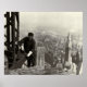 Um 1930 sichert ein Eiserner Arbeiter einen Blitz auf dem Empire State Gebäude. Das Chrysler-Gebäude ist im Hintergrund.