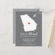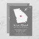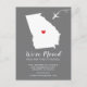 Ankündigung | Staat GEORGIA Moderne Ankündigung mit dem Staat von GEORGIA, mit einem roten Herz- und Flugzeug-Set auf grauem Hintergrund. Die Hintergrundfarbe kann einfach geändert werden, indem Sie auf Personalisieren klicken und dann klicken, um sich weiter anzupassen, um unsere Farbauswahl anzuzeigen. Von dort können Sie auch das Flugzeug & das Herz bewegen! Kontaktieren Sie unseren Shop, wenn Sie Hilfe benötigen oder einen anderen Staat benötigen.