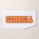Dieses Handtuch ist ein Design, das das Wort "Georgia" in einem Yearbook Solid Print Schriftart mit goldfarbenen Buchstaben rot Kontur in diesem benutzerdefinierten Staatsstolz Jersey Stil zeigt. Dieses Handtuch ist mit einer Polyester-Mischung Vorderseite, während die Rückseite ist 100% Baumwolle alle Handtücher verwenden Sublimation/lebhaften Druck, die entwickelt wurde, um zu halten.