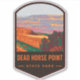 Dead Horse Point Staat Park Ein Vintages Abzeichen-Design des Dead Horse Point Staat Parks mit einem atemberaubenden Blick auf den Colorado River und den Canyonlands National Park Utah United Staaten.