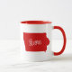 Zeigen Sie Ihren Zuhause-Staatsstolz mit diesen T - Shirt und anderen Artikeln, die eine rote Kontur des Staat von Iowa mit dem Namen in der Form haben.
