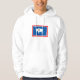 Das Bild auf diesem Sweatshirt ist die offizielle Wyoming-Staats-Flagge, die durch es erkennbar ist, ist weißes Bisonbild auf einem Feld des hellen Blaus.