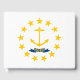 Dieses Design zeigt die Staatsflagge von Rhode Island, einem Staat in der Region Neuengland der Vereinigten Staaten. Der Staat trägt seinen kurzen Namen von Rhode Island (auch bekannt als Aquidneck Island), aber der größte Teil des Staat liegt auf dem Festland. Der Staat grenzt im Westen an Connecticut, im Norden und Osten an Massachusetts und im Süden an den Atlantischen Ozean über Rhode Island Sound und Block Island Sound; er teilt sich auch eine kleine Seegrenze zu New York. Providence ist die Hauptstadt des Staat und die beliebteste Stadt auf Rhode Island. Der offizielle Spitzname von Rhode Island ist der "Ocean Staat", auch bekannt als "Little Rhody". Das offizielle Motto von Rhode Island ist "Hoffnung". Die Flagge des Staat von Rhode Island besteht aus einem goldenen Anker, der von dreizehn Goldstern umgeben ist (die die ursprünglichen 13 Kolonien darstellen); ein blaues Band unter dem Anker trägt das Motto des Staat in Gold.