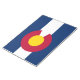 Dieses Design zeichnet sich durch die Fahne des Staat Colorado aus, einem Gebiet des Westerns United Staaten, in dem sich die meisten südlichen Rocky Mountains befinden, sowie den nordöstlichen Teil der Colorado Plateau und den Western der Great Plains. Er wird manchmal als der hundertjährige Staat bezeichnet, und sein Motto lautet "nil sine numine", was "nichts ohne Vorsehung" bedeutet. Die Fahne wurde 1911 von Andrew Carlisle Carson entworfen. Das Blau der Fahne soll den klaren Himmel repräsentieren, das Gold steht für den hellen Sonnenschein, den der Staat genießt, das Weiße repräsentiert die schneebedeckten Berge und das Rote repräsentiert die ruddelige Erde. Der Buchstabe C auf der Flagge steht natürlich für Colorado. Die Staat-Hauptstadt Colorado ist Denver, die auch die größte Stadt des Staat ist. Andere große Städte und Städte in Colorado sind Colorado Springs, Aurora, Fort Collins, Lakewood, Thornton, Arvada, Westminster, Pueblo, Centennial, Boulder, Greeley, Longmont, Loveland und Broomfield.
