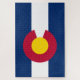 Dieses Design zeichnet sich durch die Fahne des Staat Colorado aus, einem Gebiet des Westerns United Staaten, in dem sich die meisten südlichen Rocky Mountains befinden, sowie den nordöstlichen Teil der Colorado Plateau und den Western der Great Plains. Er wird manchmal als der hundertjährige Staat bezeichnet, und sein Motto lautet "nil sine numine", was "nichts ohne Vorsehung" bedeutet. Die Fahne wurde 1911 von Andrew Carlisle Carson entworfen. Das Blau der Fahne soll den klaren Himmel repräsentieren, das Gold steht für den hellen Sonnenschein, den der Staat genießt, das Weiße repräsentiert die schneebedeckten Berge und das Rote repräsentiert die ruddelige Erde. Der Buchstabe C auf der Flagge steht natürlich für Colorado. Die Staat-Hauptstadt Colorado ist Denver, die auch die größte Stadt des Staat ist. Andere große Städte und Städte in Colorado sind Colorado Springs, Aurora, Fort Collins, Lakewood, Thornton, Arvada, Westminster, Pueblo, Centennial, Boulder, Greeley, Longmont, Loveland und Broomfield.