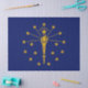 Dieses Design zeigt die Staatsflagge von Indiana, ein US-Staat in den Regionen Mittelwesten und Große Seen in Nordamerika. Sie grenzt im Nordwesten an den See Michigan, im Norden an Michigan, im Osten an Ohio, im Süden und Südosten an den Ohio River und Kentucky sowie im Westen an den Wabash River und Illinois. Indiana wurde am 11. Dezember 1816 als 19. Staat in die Vereinigten Staaten aufgenommen. Die Flagge Indianas wurde von Paul Hadley entworfen und 1917 vom Staat Indiana offiziell adoptiert. Die Fahne besteht aus einer goldenen Fackel, die Freiheit und Erleuchtung repräsentiert; die Strahlen um die Fackel stellen ihren weit reichenden Einfluss dar. Die neunzehn Sterne repräsentieren Indianas Platz als der neunzehnte Staat, den Vereinigten Staaten beizutreten. Die dreizehn Sterne im äußeren Kreislauf symbolisieren die ursprünglichen dreizehn Kolonien, die fünf inneren Sterne repräsentieren die nächsten fünf Staaten, die der Gewerkschaft hinzugefügt werden, und der eine große Stern über der Fackel repräsentiert Indiana. Die Hauptstadt Indiana ist Indianapolis, die auch die größte Stadt des Staat ist. Weitere wichtige Städte in Indiana sind Fort Wayne, Evansville, South Bend, Carmel, Fishers, Bloomington, Hammond, Gary, Lafayette, Muncie, Noblesville, Terre Haute, Greenwood, Kokomo, Anderson, Elkhart, Mishawaka und Lawrence.