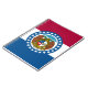 Dieses Design zeigt die Flagge von Missouri, einem Staat im Mittleren Westen der Vereinigten Staaten. Missouri grenzt an acht Staaten (die am meisten mit Tennessee verbunden sind): Iowa im Norden, Illinois, Kentucky und Tennessee (über den Mississippi) im Osten, Arkansas im Süden und Oklahoma, Kansas und Nebraska im Westen. Im Süden befinden sich die Ozarks, ein bewaldetes Hochland, das Holz, Mineralien und Erholung liefert. Der Missouri, nach dem der Staat benannt ist, fließt durch das Zentrum des Staat in den Mississippi, der die Ostgrenze Missouris bildet. Die Hauptstadt Missouri ist Jefferson City, während die größte Stadt in Missouri Kansas City ist; andere Großstädte in Missouri sind St. Louis, Springfield, Kolumbien, Independence, Lees Gipfel, O'Fallon, St. Joseph, St. Charles und St. Peters.