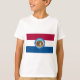 Dieses Design zeigt die Flagge von Missouri, einem Staat im Mittleren Westen der Vereinigten Staaten. Missouri grenzt an acht Staaten (die am meisten mit Tennessee verbunden sind): Iowa im Norden, Illinois, Kentucky und Tennessee (über den Mississippi) im Osten, Arkansas im Süden und Oklahoma, Kansas und Nebraska im Westen. Im Süden befinden sich die Ozarks, ein bewaldetes Hochland, das Holz, Mineralien und Erholung liefert. Der Missouri, nach dem der Staat benannt ist, fließt durch das Zentrum des Staat in den Mississippi, der die Ostgrenze Missouris bildet. Die Hauptstadt Missouri ist Jefferson City, während die größte Stadt in Missouri Kansas City ist; andere Großstädte in Missouri sind St. Louis, Springfield, Kolumbien, Independence, Lees Gipfel, O'Fallon, St. Joseph, St. Charles und St. Peters.