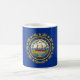 In diesem Design ist die Staatsflagge von New Hampshire (NH) zu sehen, einem Staat in der Region Neuengland im Nordosten der Vereinigten Staaten. New Hampshire grenzt im Süden an Massachusetts, im Westen an Vermont, im Osten an Maine und den Atlantischen Ozean und im Norden an die kanadische Provinz Quebec. New Hampshire wird manchmal als der "Granitfels" oder der "Staat des Weißen Berges" bezeichnet. Das Motto des Staat von New Hampshire lautet "Live Free or Die". Concord ist die Staat-Hauptstadt von New Hampshire, während Manchester die größte Stadt ist. Weitere wichtige Städte in New Hampshire sind Nashua, Derry, Dover, Rochester, Salem, Merrimack, Hudson, Londonderry, Keene, Bedford, Portsmouth, Goffstown, Laconia, Hampton, Milford, Durham, Exeter, Windham, Hooksett und Claremont.