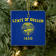 Die Staatsflagge von Oregon. Oregon ist einer der geografisch vielfältigsten Staaten in den USA, geprägt von Vulkanen, üppigen Wasservorkommen, dichten immergrünen und gemischten Wäldern sowie hohen Wüsten und halbariden Schreubland. Auf 3.429 m ist der Berg Hood, ein Stratovulkan, der höchste Punkt des Staat. Der einzige Nationalpark Oregons, der Crater Lake National Park, umfasst die Caldera um den Kratersee, den tiefsten See der Staaten. Der Staat ist auch Zuhause zum weltweit größten Organismus des Single, Armillaria ostoyae, einem Pilz, der unter 8.200 Hektar (8,9 km2) des Malheur Nationalwaldes liegt.