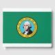 Dieses Design zeichnet sich durch die Flagge des Staat von Washington aus, der sich in der Pazifikregion Nordwesten der Vereinigten Staaten befindet. Sie ist nach George Washington (1732-1799) benannt, dem ersten US-Präsidenten. Washington wird oft als Washington Staat bezeichnet, um es von der Hauptstadt des Landes, Washington D.C., zu unterscheiden. Die Fahne zeigt das Siegel des Staat, das ein Bild des Staat George Washington auf einem dunkelgrünen Feld enthält. Es ist die einzige US-Staatsflagge mit einem grünen Feld; es ist auch die einzige Staatsflagge, die das Image eines amerikanischen Präsidenten enthält.