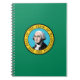Dieses Design zeichnet sich durch die Flagge des Staat von Washington aus, der sich in der Pazifikregion Nordwesten der Vereinigten Staaten befindet. Sie ist nach George Washington (1732-1799) benannt, dem ersten US-Präsidenten. Washington wird oft als Washington Staat bezeichnet, um es von der Hauptstadt des Landes, Washington D.C., zu unterscheiden. Die Fahne zeigt das Siegel des Staat, das ein Bild des Staat George Washington auf einem dunkelgrünen Feld enthält. Es ist die einzige US-Staatsflagge mit einem grünen Feld; es ist auch die einzige Staatsflagge, die das Image eines amerikanischen Präsidenten enthält.