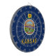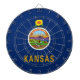 Dieses Design ist mit der Flagge von Kansas versehen, einem Staat im Mittleren Westen der Vereinigten Staaten. Kansas grenzt im Norden an Nebraska, im Osten an Missouri, im Süden an Oklahoma und im Westen an Colorado. Kansas ist nach dem Kansas-Fluss benannt, der wiederum nach den Ufern des Kansa-Indianers benannt wurde. Der offizielle Spitzname von Kansas ist der "Sonnenblumen-Staat", aber auch bekannt als der "Weiße Staat", der "Jayhawker-Staat" und der "Freie Staat". Die Kansas-Staatsflagge umfasst das Siegel des Staat und eine Sonnenblume. Die Fahne wurde erstmals 1927 entworfen, und dieses ursprüngliche Design wurde 1961 modifiziert, um den Namen des Staat am unteren Ende der Fahne hinzuzufügen. Die Hauptstadt Kansas ist Topeka und ihre größte Stadt ist Wichita. Weitere wichtige Städte in Kansas sind Overland Park, Kansas City, Olathe, Lawrence, Shawnee, Manhattan, Lenexa, Salina, Hutchinson, Leavenworth, Leawood, Dodge City, Garden City, Emporia, Derby, Junction City, Prairie Village, Gardner, Hays, Liberal, Newton Großer Bend.