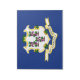 In diesem Design ist die Flagge von Connecticut zu sehen, dem südlichsten Staat in der Region Neuengland im Nordosten der Vereinigten Staaten. Es grenzt im Osten an Rhode Island, im Norden an Massachusetts, im Westen an New York und im Süden an Long Island Sound. Nach den meisten Quellen ist es Teil von Neuengland, obwohl große Teile von ihm häufig mit New York und New Jersey als Tri-Staat-Gebiet gruppiert sind. Der Staat ist nach dem Fluss Connecticut benannt, der den Staat ungefähr halbiert. Der Name "Connecticut" leitet sich von dem Wort "Mohegan-Pequot" für "Long Tidal River" ab. Der offizielle Spitzname von Connecticut ist der "Verfassungs-Staat", aber auch bekannt als der "Nutmeg-Staat", der "Provisions-Staat" oder das "Land der beständigen Lebensräume". Das lateinische Motto lautet "Qui transtulit sustinet", d.h. "Wer sich transplantiert hat, erhält". Die Fahne des Staat von Connecticut enthält einen barocken Schild mit drei Weinreben, die jeweils drei lila Trauben auf einem königsblauen Feld tragen. Die Hauptstadt von Connecticut ist Hartford und die bevölkerungsreichste Stadt des Staat ist Bridgeport. Weitere wichtige Städte in Connecticut sind New Haven, Stamford, Waterbury, Norwalk, Danbury, New Britain, Bristol, Meriden, West Haven und Milford.
