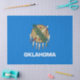 Dieses Design zeigt die Fahne von Oklahoma, ist ein Staat in der südlichen Zentralregion der Vereinigten Staaten. Es grenzt an den Staat Texas im Süden und Westen, Kansas im Norden, Missouri im Nordosten, Arkansas im Osten, New Mexico im Westen und Colorado im Nordwesten. Seine Hauptstadt und größte Stadt ist Oklahoma City. Die Fahne des Staat Oklahoma besteht aus einem Büffelschild mit sieben Adlerfedern auf einem himmelblauen Choctaw-Hintergrund.