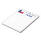 Diese Fahne des stolzen Lone Star Staat von Texas wird unter Verwendung der exakten Farbtöne von Rot, Weiß und Blau der Fahne der USA hergestellt. Dieses personalisierte Notizblock ist perfekt