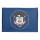Dieses Design zeigt die Flagge von Utah, die ein Staat im Western United Staaten ist. Es grenzt im Osten an Colorado, im Nordosten an Wyoming, im Norden an Idaho, im Süden an Arizona und im Westen an Nevada. Es Touch auch eine Ecke von New Mexico im Südosten. Die Staat-Hauptstadt von Utah ist Salt Lake City. Die Staatsflagge von Utah besteht aus dem Siegel Utah, das in einem goldenen Kreis auf einem Hintergrund dunkelmarineblau umkreist ist. Das Siegel enthält das Motto des Staat "Industrie".