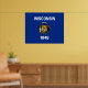 Dieses Design zeichnet sich durch die Staatsflagge von Wisconsin aus, das sich in den Regionen Mittelwesten und Große Seen der Vereinigten Staaten befindet. Es grenzt im Westen an Minnesota, im Südwesten an Iowa, im Süden an Illinois, im Osten an den Michigan-See, im Nordosten an Michigan und im Norden an den Superior-See. Die Staat-Hauptstadt von Wisconsin ist Madison, und ihre größte Stadt ist Milwaukee. Der Staat ist einer der führenden Milchproduzenten des Landes und wird als "Amerikas Dairyland" bezeichnet. Es wird auch als "Badger Staat" bezeichnet. Die Staatsflagge von Wisconsin zeigt das Wappen des Staat auf blauem Hintergrund; sie zeigt auch den Namen des Staat und das Jahr 1848, das Jahr, in dem Wisconsin in die Gewerkschaft aufgenommen wurde.