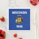 Dieses Design zeichnet sich durch die Staatsflagge von Wisconsin aus, das sich in den Regionen Mittelwesten und Große Seen der Vereinigten Staaten befindet. Es grenzt im Westen an Minnesota, im Südwesten an Iowa, im Süden an Illinois, im Osten an den Michigan-See, im Nordosten an Michigan und im Norden an den Superior-See. Die Staat-Hauptstadt von Wisconsin ist Madison, und ihre größte Stadt ist Milwaukee. Der Staat ist einer der führenden Milchproduzenten des Landes und wird als "Amerikas Dairyland" bezeichnet. Es wird auch als "Badger Staat" bezeichnet. Die Staatsflagge von Wisconsin zeigt das Wappen des Staat auf blauem Hintergrund; sie zeigt auch den Namen des Staat und das Jahr 1848, das Jahr, in dem Wisconsin in die Gewerkschaft aufgenommen wurde.