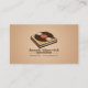 A vintage-style business card featuring a stack of vinyl records on a gradient beige background, enhancing the retro feel and suggesting a used record store aesthetic. It could be used by a music label, a used music store, a DJ or singer, music event organizer or any jobs in music and audio trades!