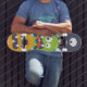 Stacked Monsters Orange Green Black Kids skateboard is a dun and cute design for the little ones to enjoy