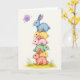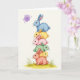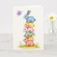 Designed with a tall, vertical stack of six cute rabbits, this illustration lines them up like a gentle tower in soft pastel tones 🐰. Each bunny has rounded shapes, subtle shading, and red-brown eyes that glance toward one another as if sharing a quiet, friendly secret. At the top, a calm blue rabbit looks to the left, with a small cluster of lavender, cloud-like puffs floating nearby like a tender daydream. Beneath it sit a yellow rabbit, a soft pink rabbit, a green rabbit, another yellow rabbit, and a coral-pink rabbit at the base, all balanced closely as if trusting the one below 🐇. The background stays simple, letting the colors of the rabbits stand out against a light, airy backdrop. Any greeting text can sit centered near the top in a gentle lavender tone, with a smaller line placed near the bottom in soft gray to keep the focus on the characters. At the very bottom, a patch of green grass is sprinkled with tiny yellow flowers under the coral-pink rabbit’s feet.