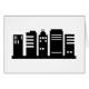 Einfache schwarze Grafik von großen Wolkenkratzern in Großstadt. Passen Sie Ihre eigene Hintergrundfarbe an und wählen Sie sie aus. Bilder auf verschiedenen Geschenken und Produkten erhältlich.