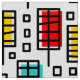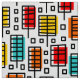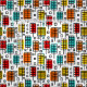 Ein farbenfrohes, originelles Retro-Design, das aus rechteckigen Blättern wie Motiven mit Offsetfarben-Rechtecken besteht.