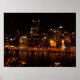 Ein Foto von Pittsburghs Skyline in der Nacht. Der Himmel ist massiv, schwarz und goldgelb leuchten aus den Gebäude und reflektieren das Wasser des Flusses. Dieses Foto wurde im Sommer von der Spitze des Mount Washington genommen.