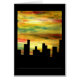 Abstrakte Silhouette einer Stadt über einem bunten abstrakten Himmel.