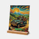 Folk Art Road Trip Embark auf einer musikalischen Reise mit diesem inspirierten Volkskunstdruck. Ein Vintager LKW nimmt die Bühne in der Mitte auf einer kurvenreichen Straße, umgeben von Schaukeln, die Banjos und Gitarren spielen. Die warmen Farben der aufgehenden oder untergehenden Sonne warfen ein magisches Licht über die Berge und Wolken. Apfelbäume, Kürbisse und Maisstähle schaffen ein Gefühl von Herbstreichhaltigkeit. Dieses aufwändige Kunstwerk mit lebhaften Farben und aufwändigen Mustern eignet sich perfekt für Fans von mit künstlerischer Intelligenz kreierten Bildern.