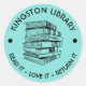 Der aquamarine Aufkleber in der Stadtbibliothek bietet einen Bücherstapel in der Mitte mit modernen Rundschreiben.