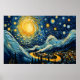 Nachtstadtbild mit Mondlicht, Sternenhimmel und Lichtweg S Van Gogh Style Illustration for Wall Art and Wohngestaltung