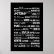 Schwarz-Weiß-Poster mit Namen berühmter europäischer Städte.