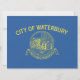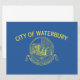 Dieses Design ist mit der Fahne von Waterbury versehen, einer Stadt im US-Staat Connecticut. Waterbury liegt am Naugatuck River, etwa 55 km südwestlich von Hartford und 120 km nordöstlich von New York City. Waterbury ist die zweitgrößte Stadt im Landkreis von New Haven, Connecticut, nach der Stadt New Haven, die die Zuhause der Yale University ist. Waterbury trägt manchmal den Spitznamen "Die Messingstadt", weil es in der ersten Hälfte des 20. Jahrhunderts das führende Zentrum in den Staaten für die Herstellung von Messing war. Das lateinische Motto von Waterbury, Connecticut, lautet "Quid Aere Perennius", was bedeutet "Was ist länger als Messing?"